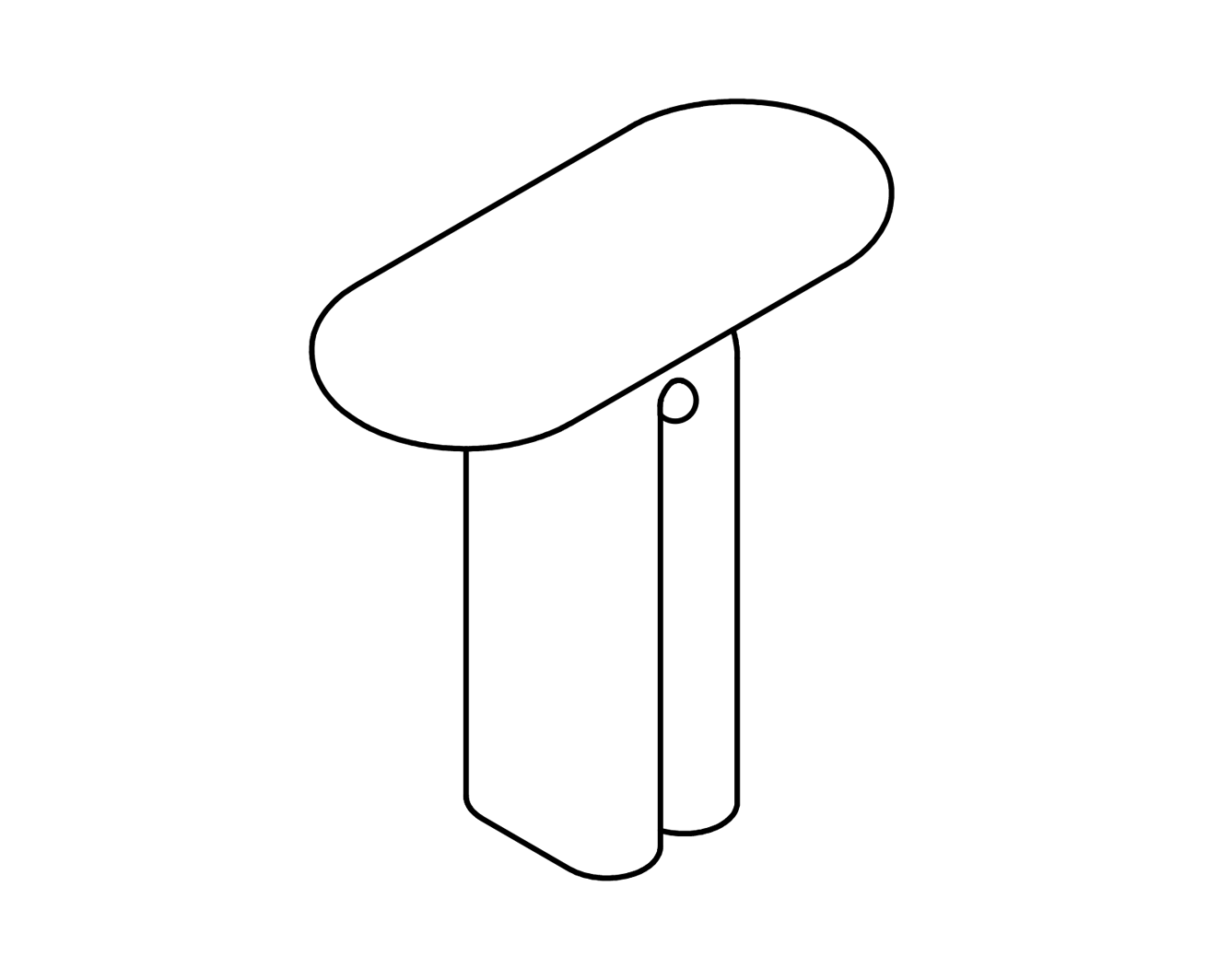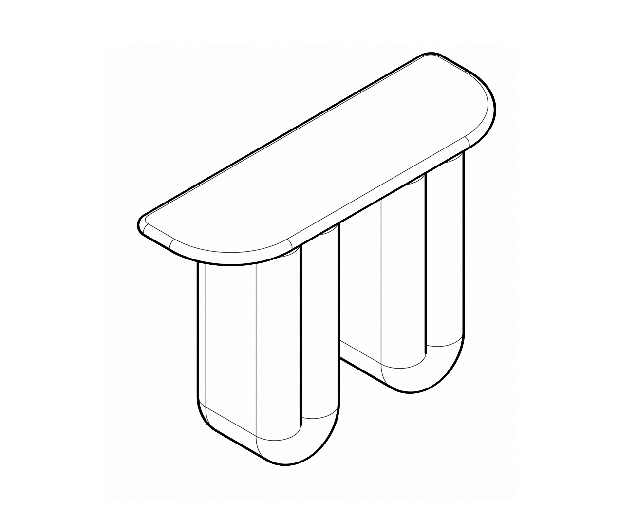 Illustration de style esquisse d'un comptoir de bar avec plateau rectangulaire arrondi et base soutenue par deux colonnes verticales.