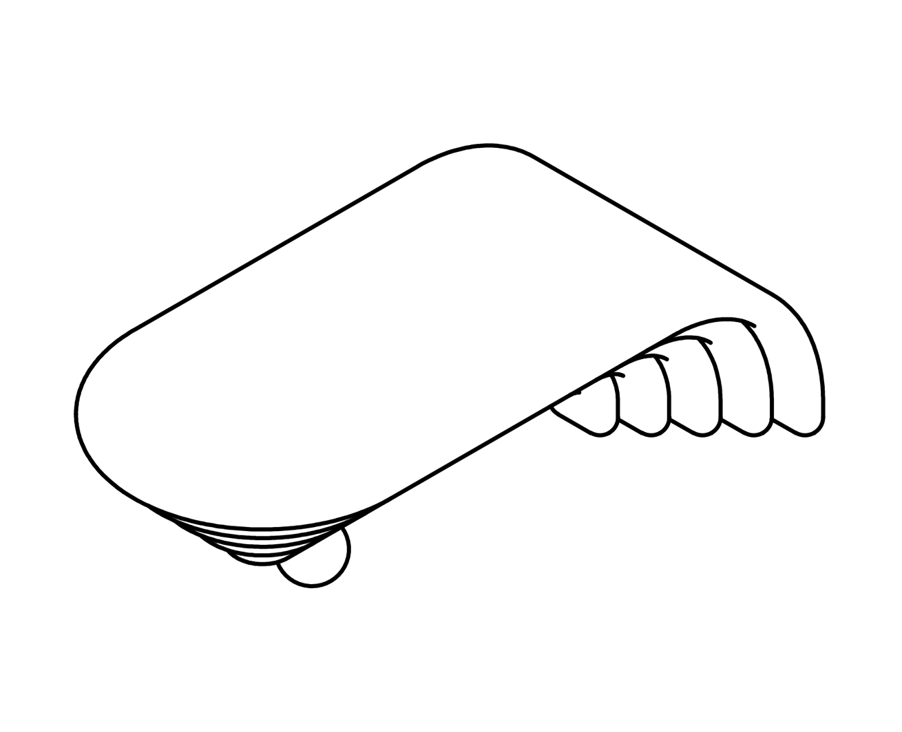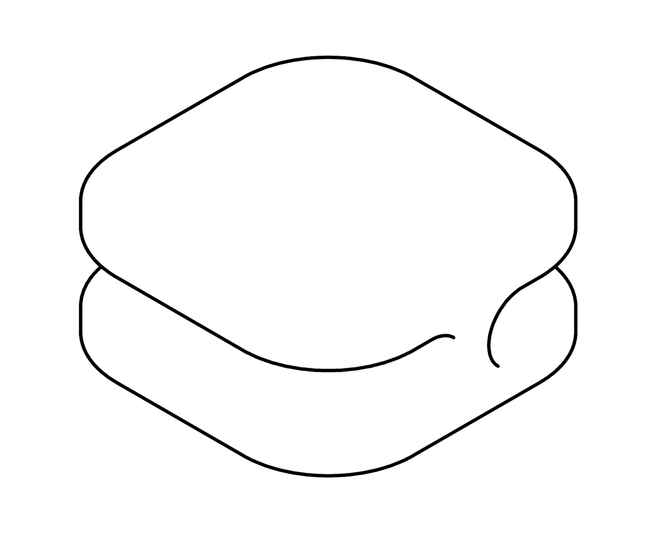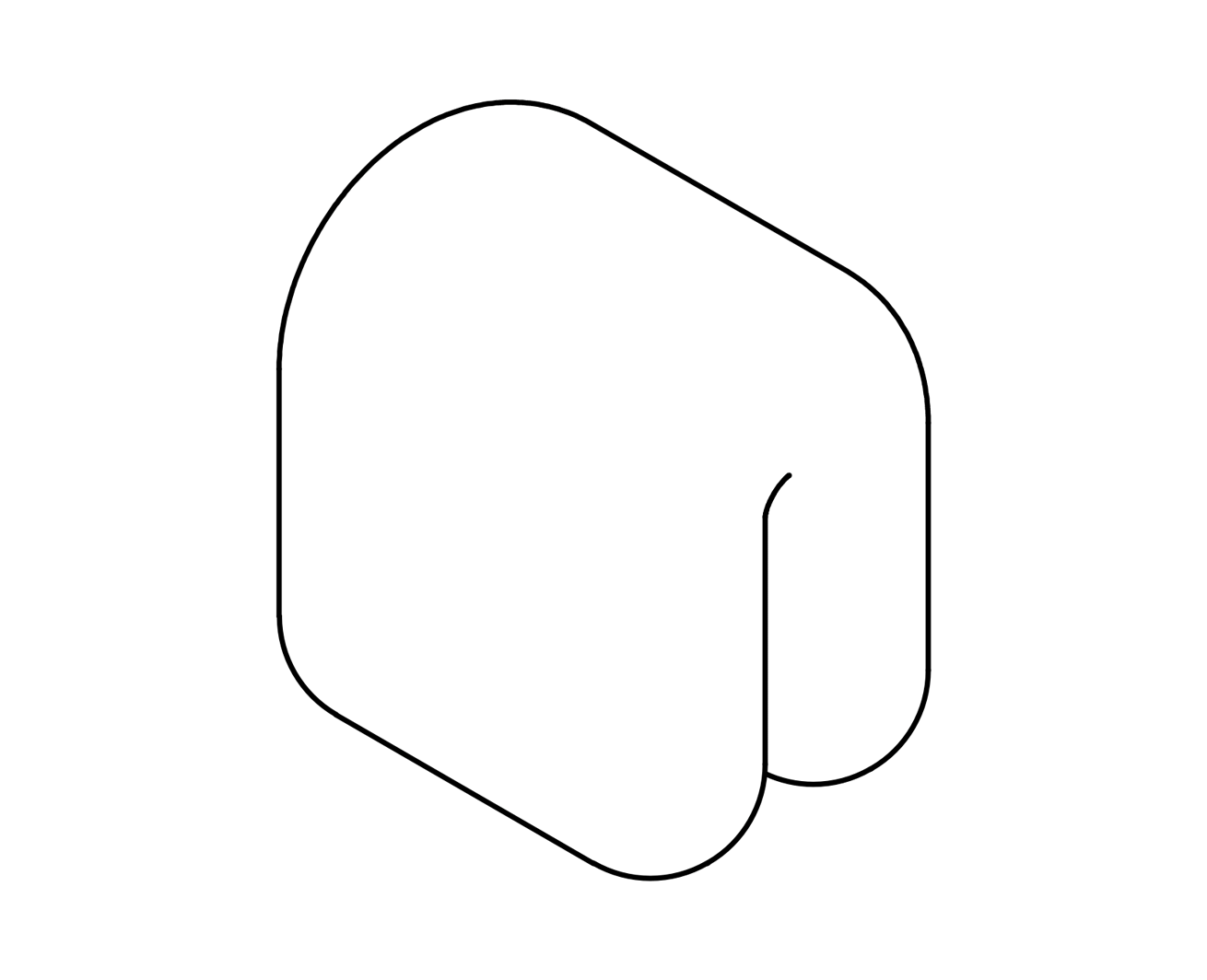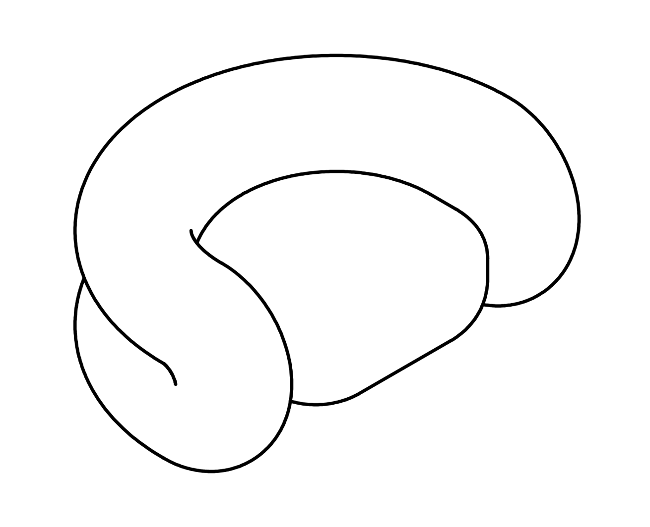 Croquis d'un objet en forme de boucle ou de serpent, tracé en lignes noires simples sur fond blanc.