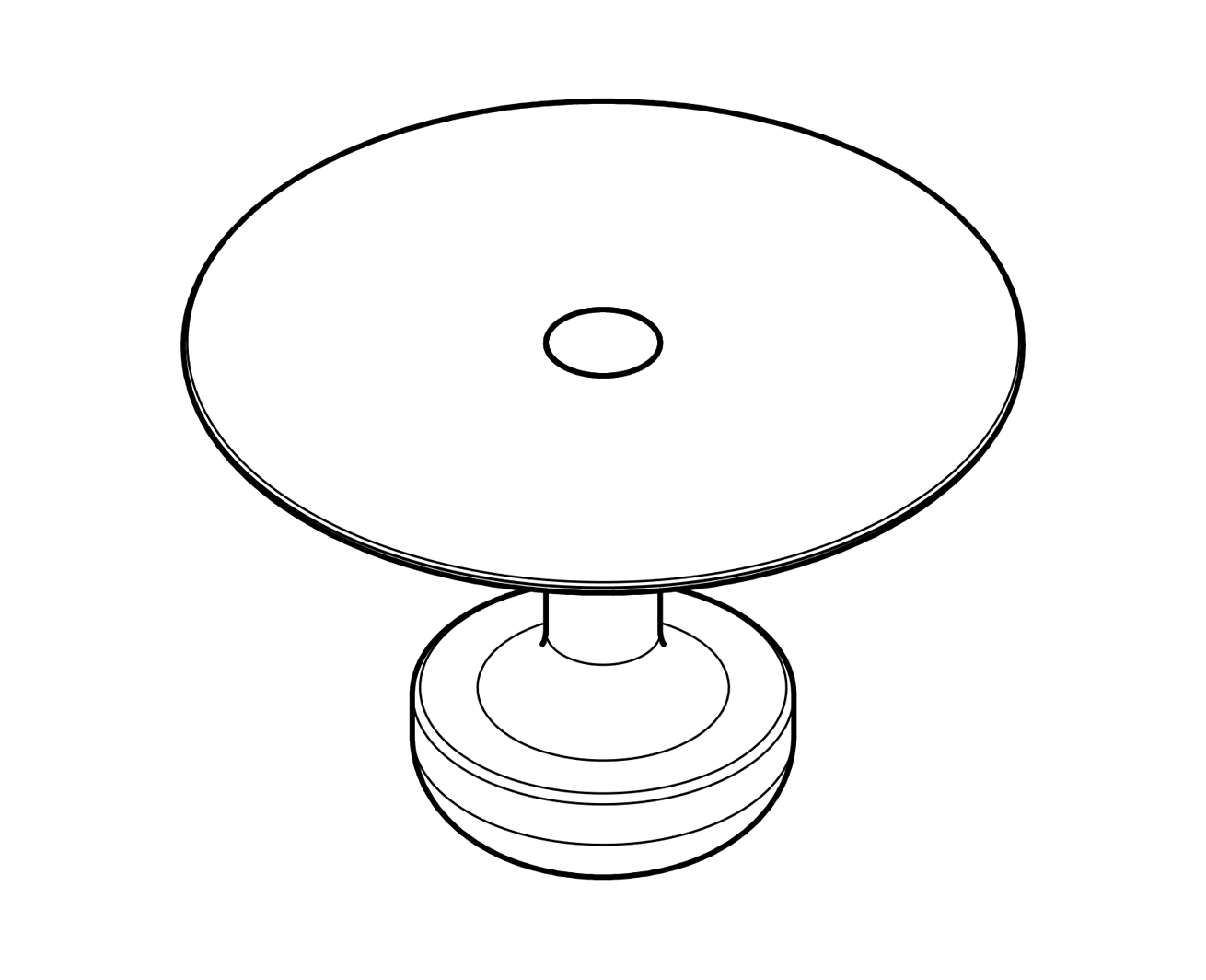 Croquis d'une table ronde avec un piètement en forme de disque empilé.